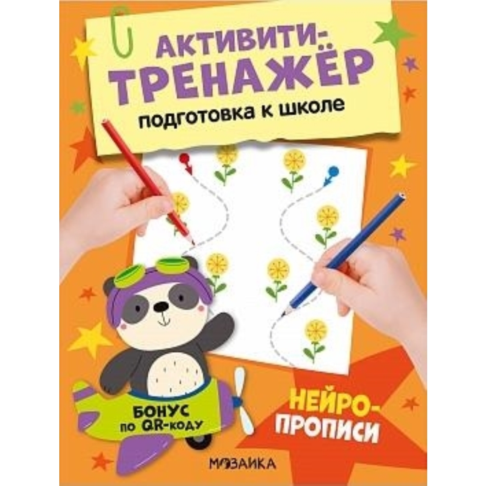 Нейропрописи (Активити-тренажер. Подготовка к школе), книжки с заданиями В книге «Нейропрописи» серии «Активити-тренажер. Подготовка к школе» все задания нужно выполнять одновременно двумя руками. Благодаря этому у ребенка увеличится скорость мышления, повысится продуктивность работы головного мозга, улучшится ориентация в пространстве и координация движений. Кроме того, в книге дан куаркод, по которому можно скачать дополнительные материалы для отработки по теме.