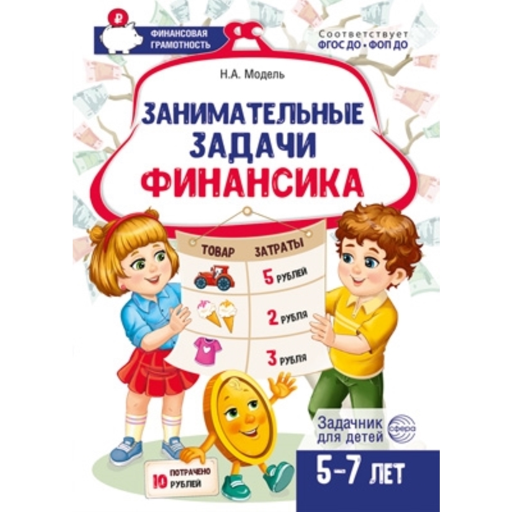 «Занимательные задачи Финансика» задачник для детей 5–7 лет (к тетрадям «Путешествие в Сказочные Финансы», «Школа Финансов») поможет детям закрепить на практике такие финансовые понятия как: «товар», «цена», «стоимость», «семейный бюджет» и др. Задачник содержит упражнения на развитие вычислительных навыков в пределах 20. Межпредметные связи заданий помогут в развитии системного и аналитического мышления, вычислительных навыков, логики, умения рассуждать и делать выводы, понимать взаимосвязи с реальными жизненными ситуациями. Если ваш ребёнок ещё не умеет считать до 20, помогите ему или измените числовые данные. Рекомендуется использовать вместе с рабочими тетрадями по финансовой грамотности.