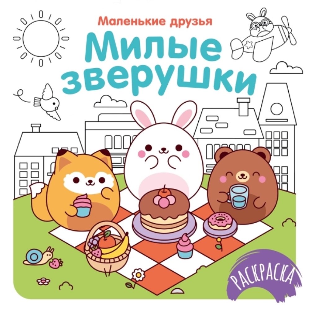 Котики и зайчики, лягушки и медвежата - самые разные милые зверята ждут вас в этой книге-раскраске! Более 60 иллюстраций в очаровательном ретро-мультяшном стиле подарят ребенку часы увлекательного творчества. Раскрашивание картинок способствует развитию воображения, мелкой моторики и цветового восприятия у детей. Плотная бумага позволит использовать различные материалы для раскрашивания - цветные карандаши, фломастеры на водной основе или ручки. Квадратный формат 190х190 мм и мягкая обложка - идеальный вариант для путешествий и развлечения в дорогу!