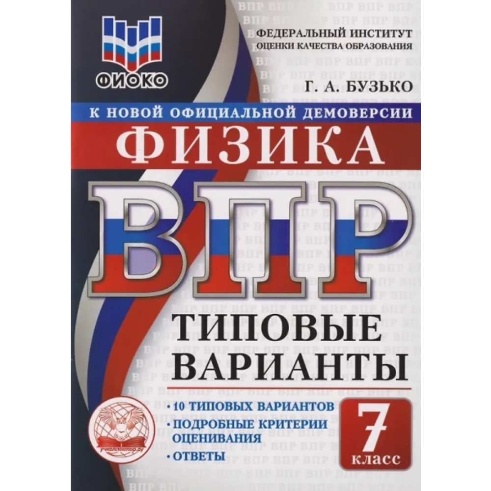 Данное пособие полностью соответствует федеральному государственному‚ образовательному стандарту. Книга содержит 10 типовых вариантов Всероссийской проверочной работы (ВПР) по физике для учащихся 7-х классов. Сборник предназначен учащимся 7-х классов, учителям и методистам, использующим типовые варианты для подготовки к Всероссийской проверочной работе по физике.